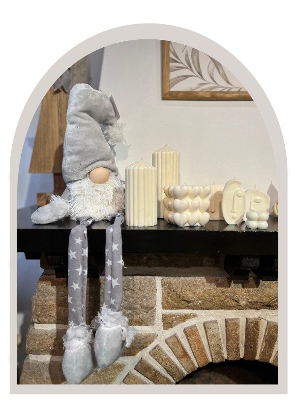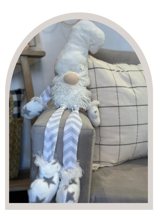 Este adorable duende de patas largas es el detalle perfecto para sumar magia y ternura a tu Navidad. Con su gorro de felpa blanca, barba suave y piernas en tonos grises con diseño chevron, aporta ese encanto simple y acogedor típico del estilo nórdico.