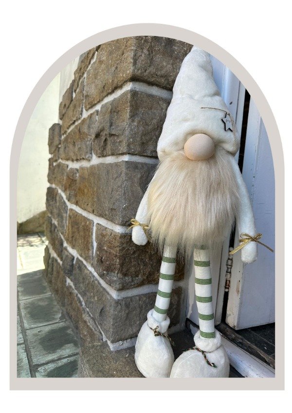 Agregá un toque divertido y elegante a tu decoración navideña con este duende alto en tono gris.