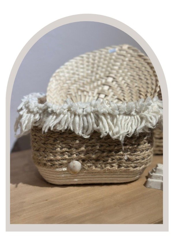 Cestos tejidos a mano con materiales reciclados, ideales para organizar y decorar cualquier rincón del hogar. Su diseño artesanal los convierte en piezas únicas, disponibles en distintos tamaños para adaptarse a cada necesidad: guardar mantas, juguetes, ropa o accesorios.